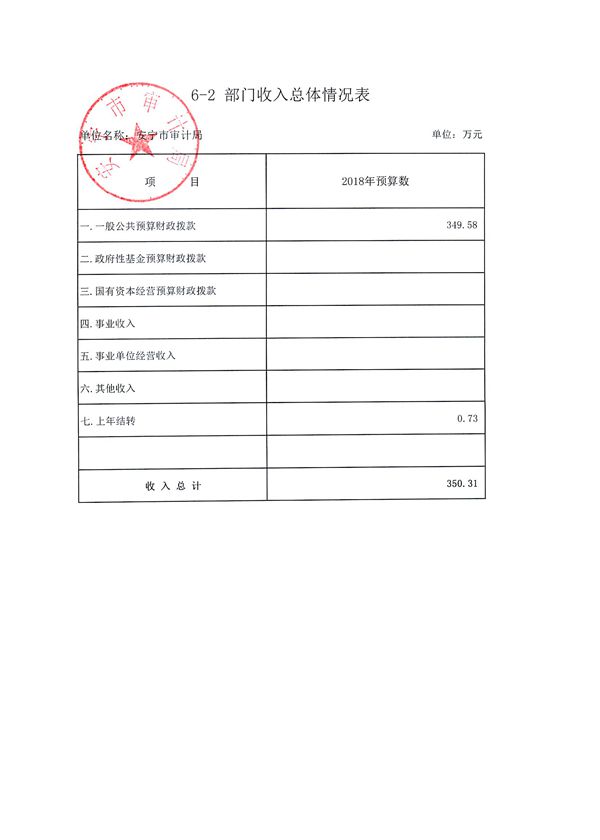 6-2安宁市审计局部门收入总体情况表