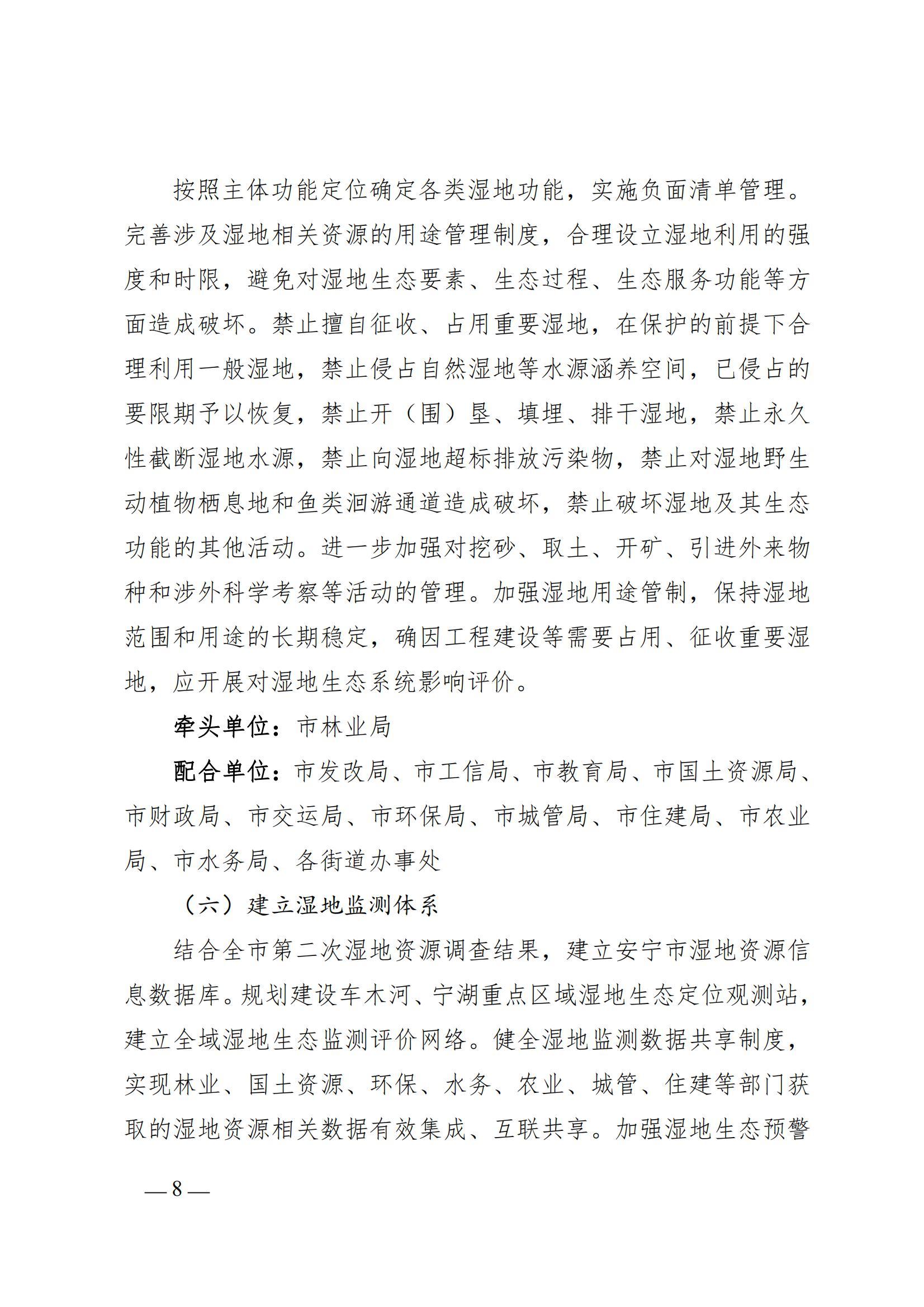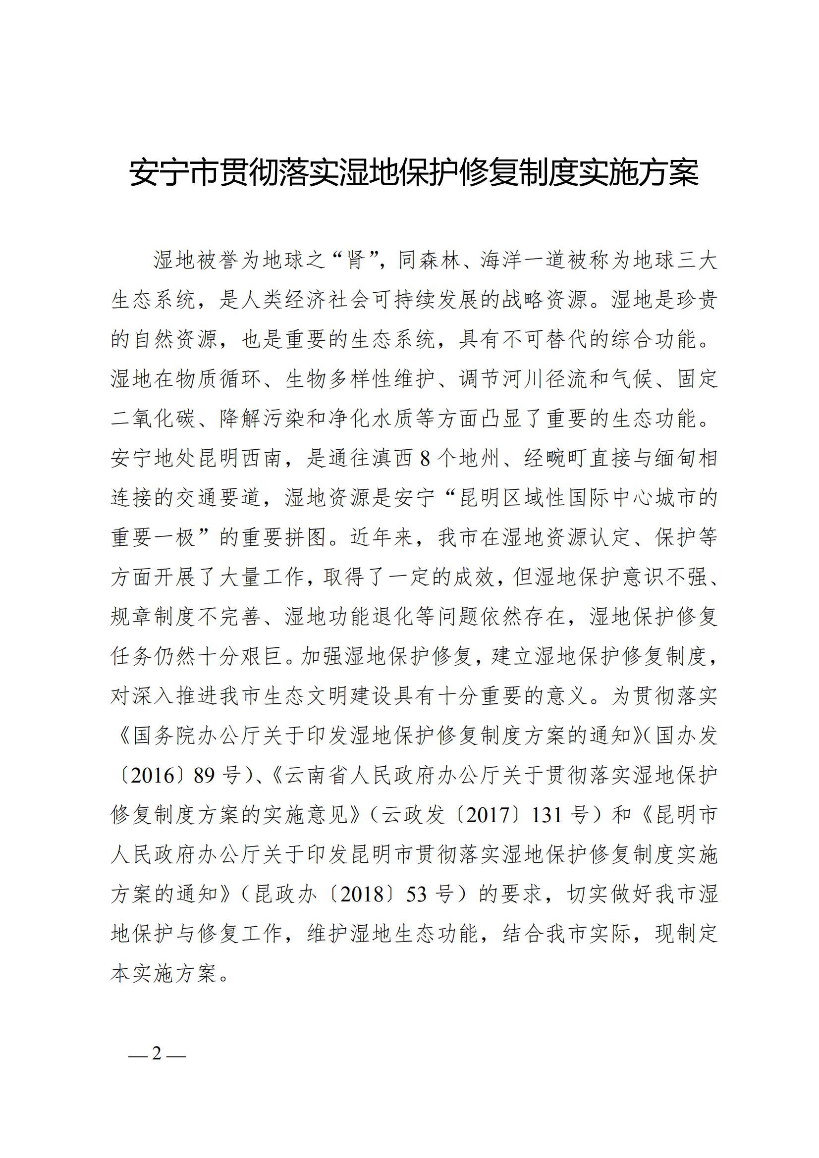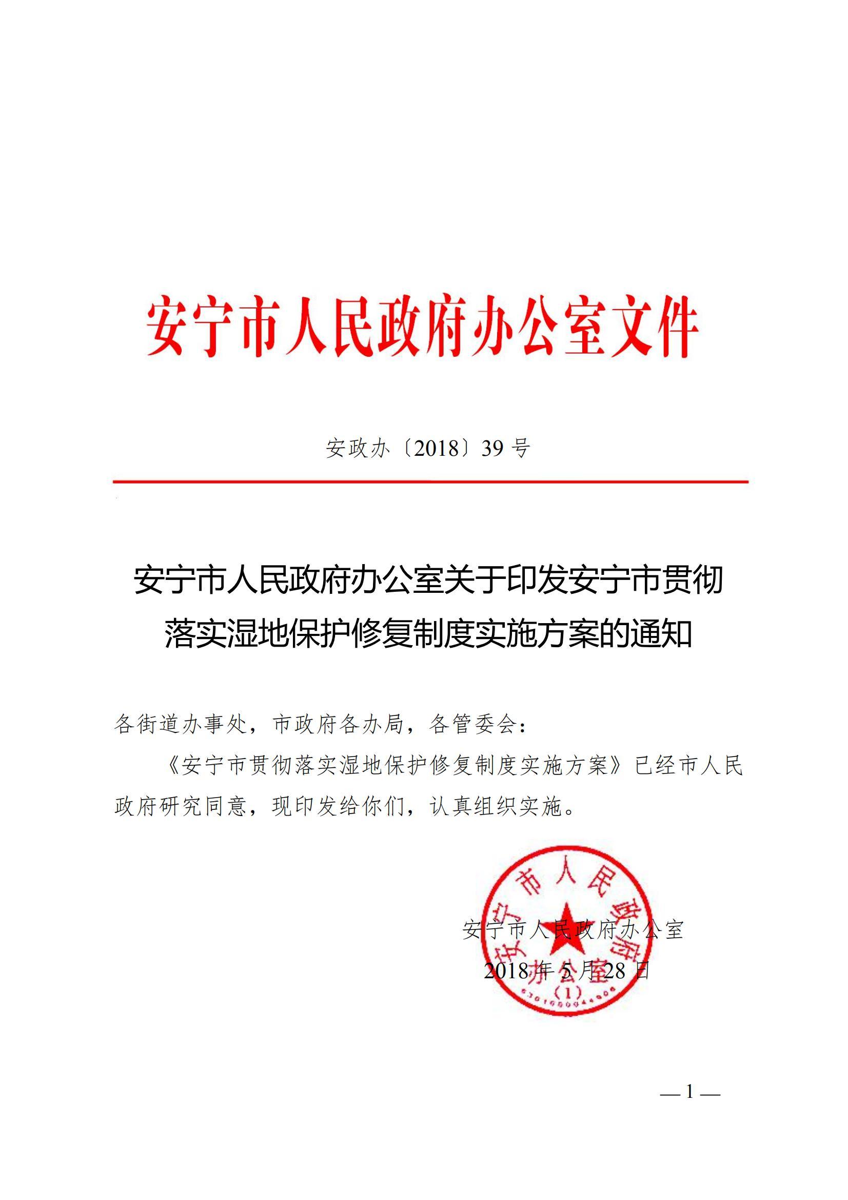 安宁市人民政府办公室关于印发安宁市贯彻落实湿地保护修复制度实施方案的通知(安政办2018-39)