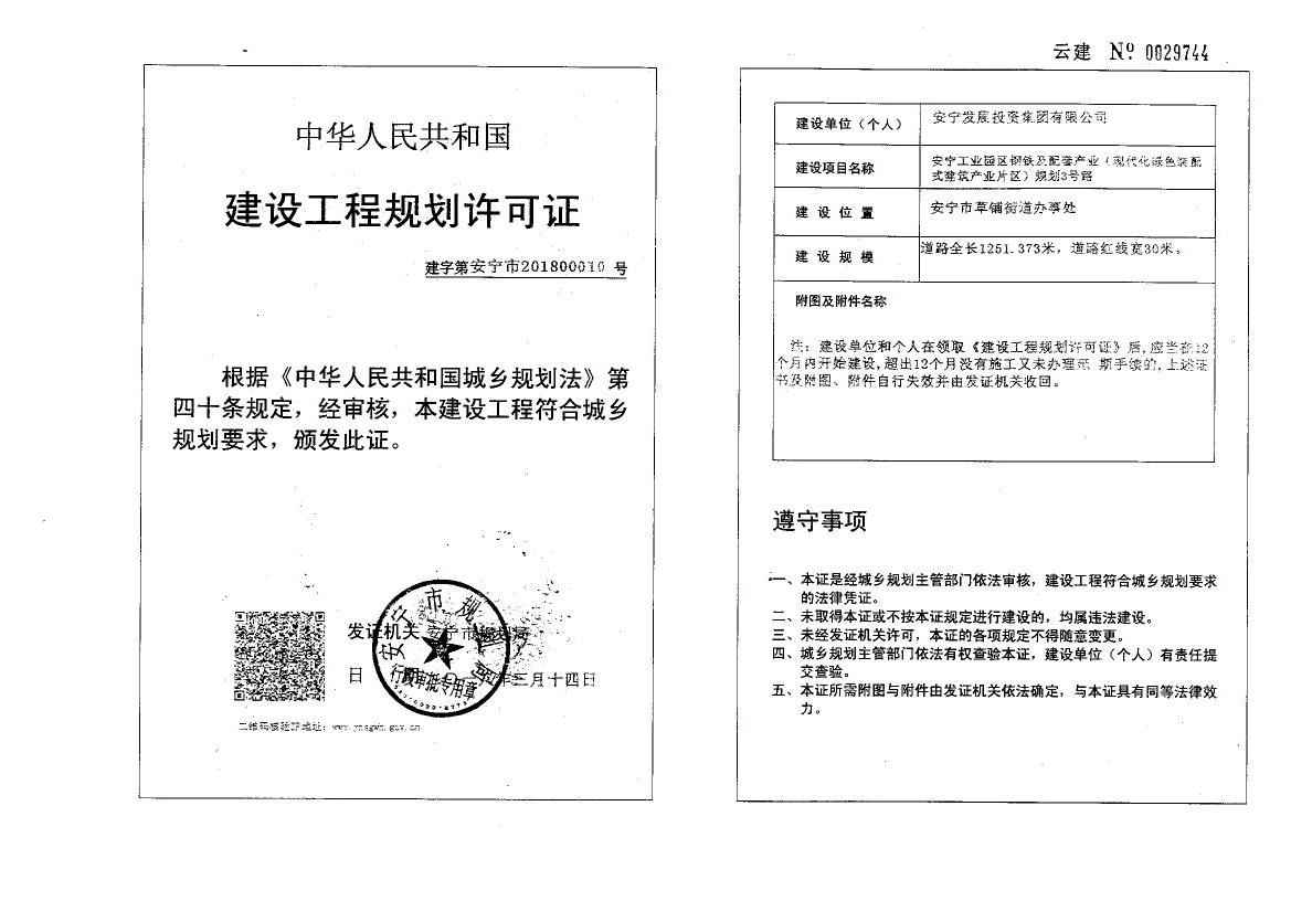 安宁市工业园区钢铁及配套产业(现代化绿色装配式建筑产业片区)规划3号路建设工程规划许可证10号