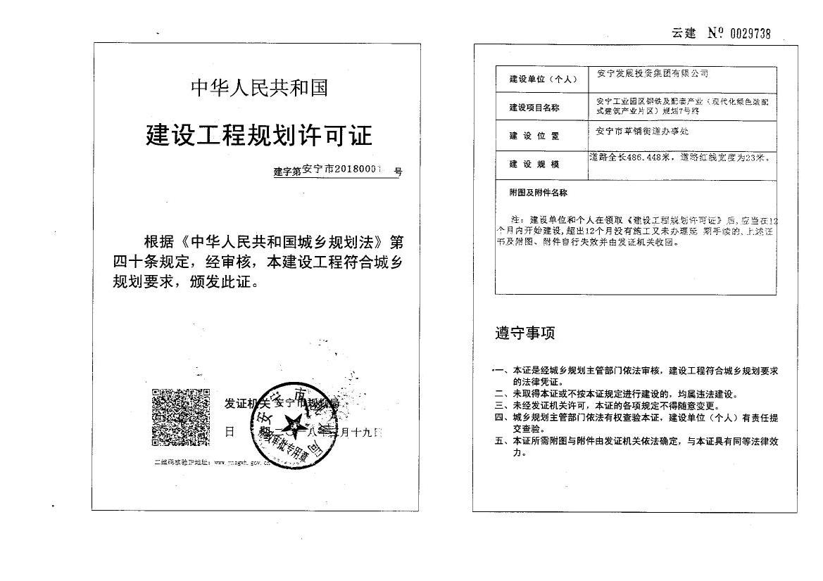 安宁市工业园区钢铁及配套产业(现代化绿色装配式建筑产业片区)规划7号路建设工程规划许可证13号