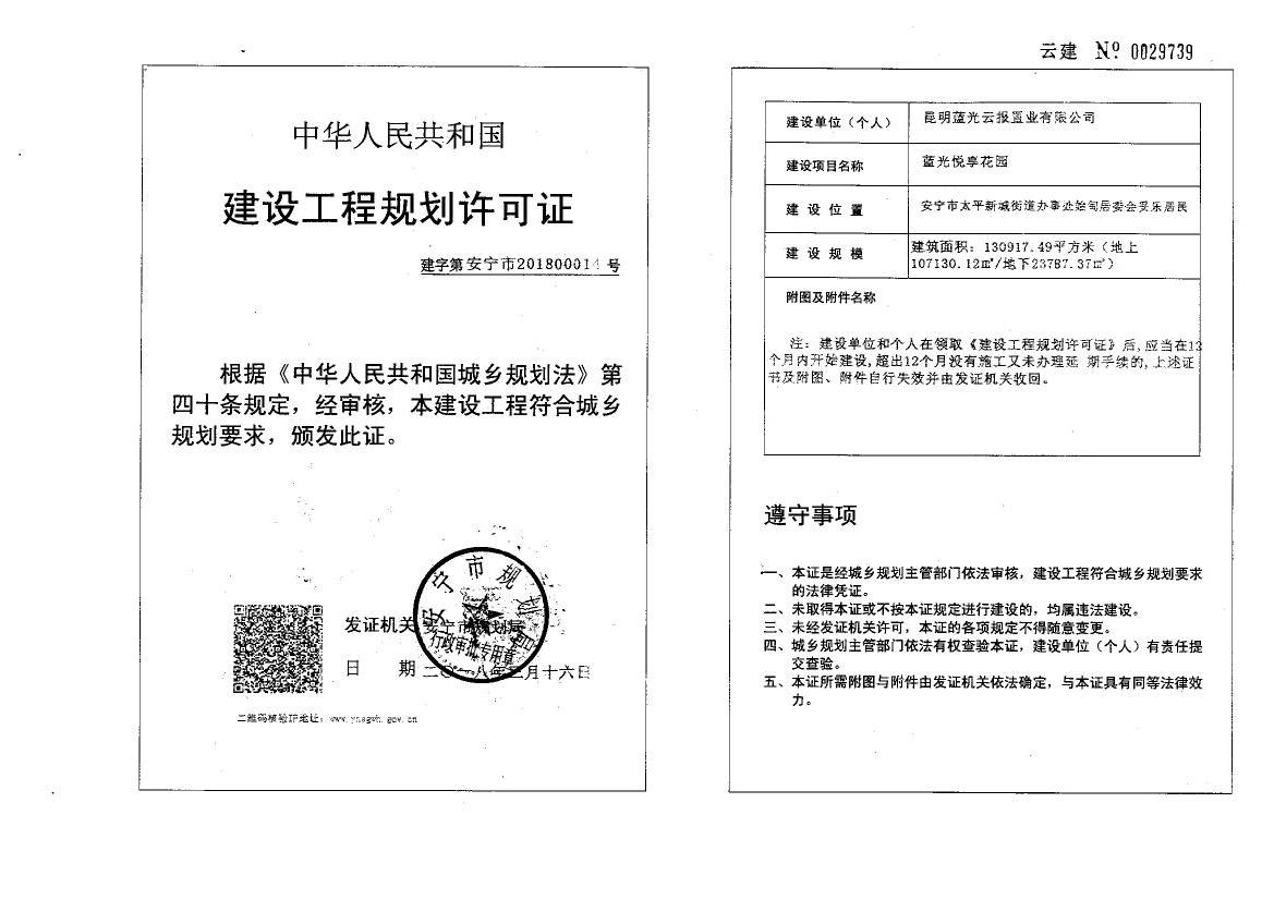 蓝光悦享花园建设工程规划许可证14号