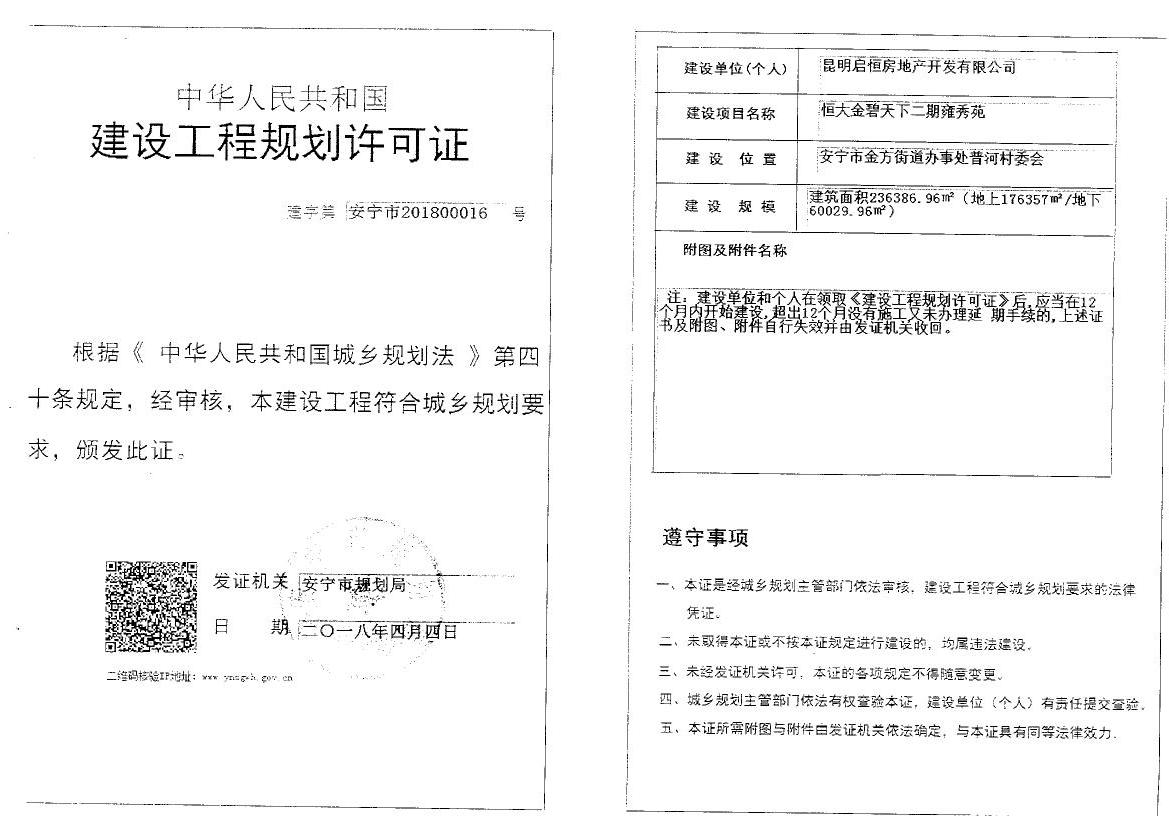 恒大金碧天下二期雍秀苑建设工程规划许可证16号