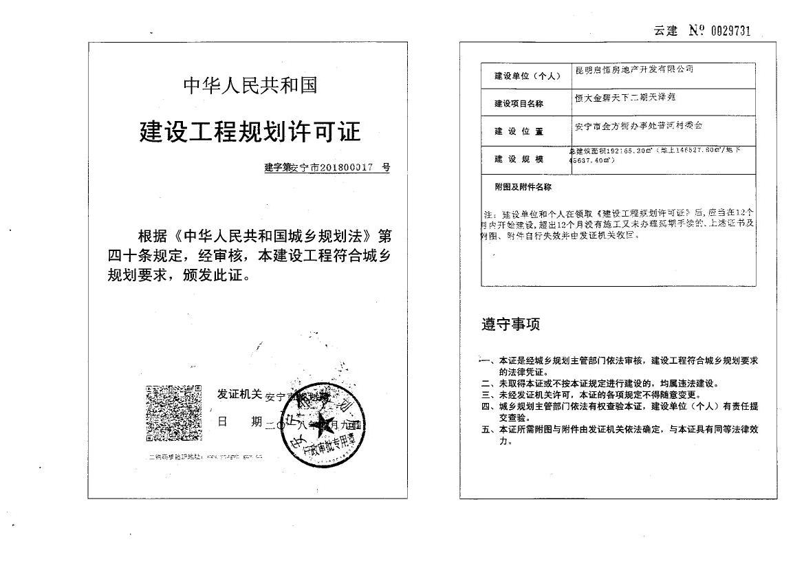 恒大金碧天下二期天泽苑建设工程规划许可证17号 Copy1