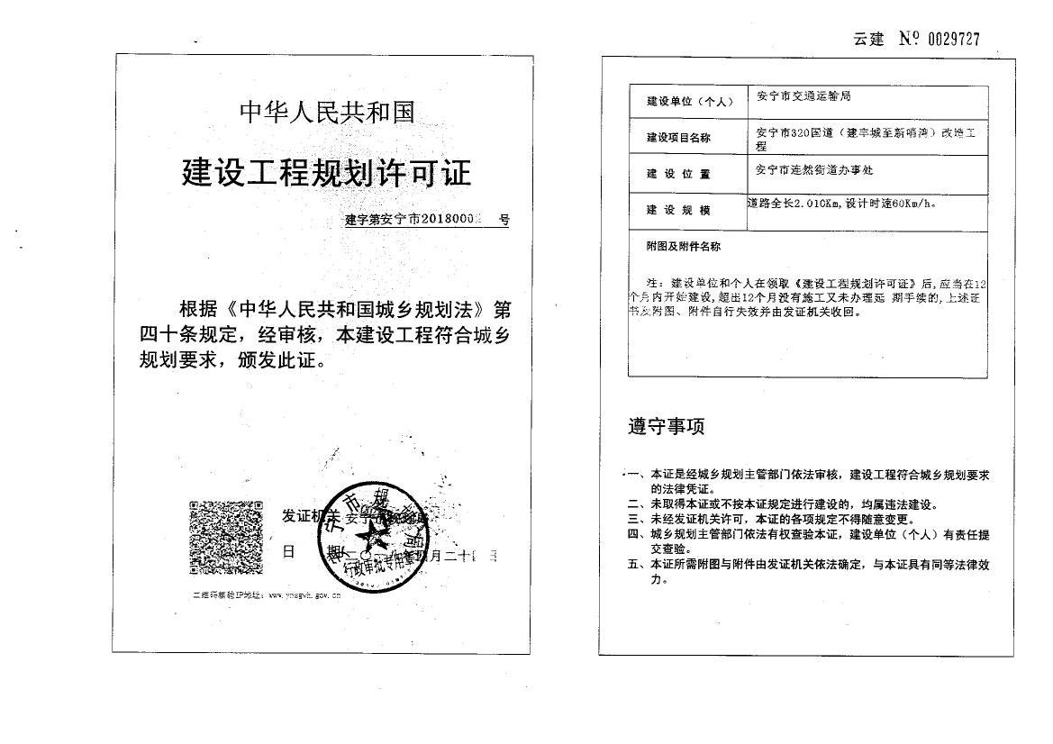 安宁市320国道(建丰城至新哨湾)改造工程建设工程规划许可证24号
