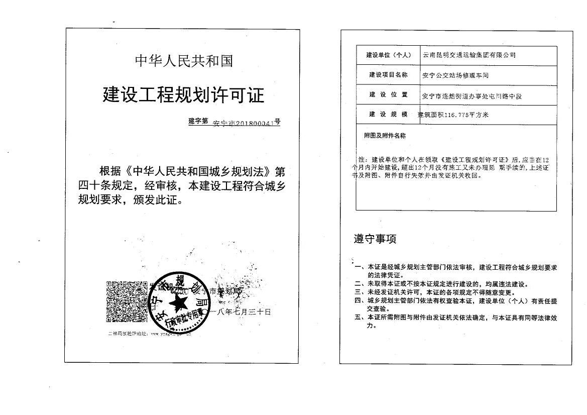 安宁公交站场修理车间建设工程规划许可证41号