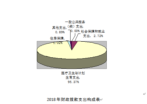 2.医疗卫生与计划生育支出34,283,587.97元,占一般公共预算财政拨款总支出的95.37%。主要用于人员经费支出4,929,526.69元、卫生改革项目100,000.00元、卫生系统内部审计项目100,000.00元、医患纠纷法律咨询30,000.00元、中医院急诊能力建设100,000.00元、基层医疗卫生机构740,382.00元、基本公共卫生服务6,627,269.81元、重大公共卫生专项643,651.00元、突发公共卫生事件应急处理27,600.00元、其他公共卫生支出5,962,050.47元、计划生育事务14,785,564.00元、行政事业单位医疗76,000.00元、其他医疗卫生与计划生育支出161,544.00元。