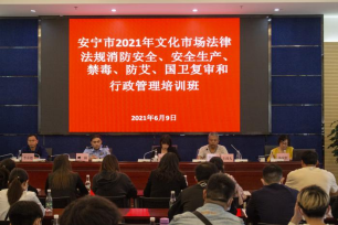 为进一步规范全市文化市场经营秩序,不断提高文化行业经营单位管理人员和广大从业人员禁毒防艾、消防安全意识,全面落实安全生产主体责任和标准化建设相关要求,改进文化市场管理,促进文化市场安全、繁荣、健康、有序发展。2021年6月9日,安宁市文化和旅游局组织开展了全市文化行业法律法规、消防安全、安全生产、禁毒防艾、国卫复审、7个专项行动和行政管理工作知识培训班。来自全市文旅行业经营单位负责人、各街道文旅中心负责人、文化专干、文化和旅游局机关全体干部职工、文化市场全体执法人员共149人参加。