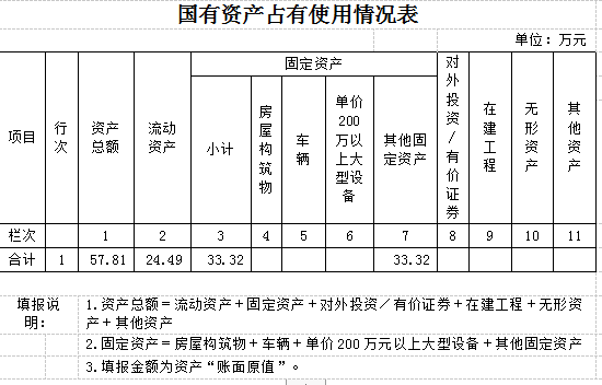 截至2020年12月31日,安宁市建设工程标准定额站资产总额57.81万元,其中,流动资产24.49万元,固定资产33.32万元,对外投资及有价证券0.00万元,在建工程0.00万元,无形资产0.00万元,其他资产0.00万元(具体内容详见附表)。与上年相比,本年资产总额增加25.02万元,其中流动资产增加1.15万元,固定资产增加23.87万元。处置房屋建筑物0平方米,账面原值0.00万元;处置车辆0辆,账面原值0.00万元;报废报损资产0项,账面原值0.00万元,实现资产处置收入0.00万元;出租房屋0平方米,账面原值0.00万元,实现资产使用收入0.00万元。