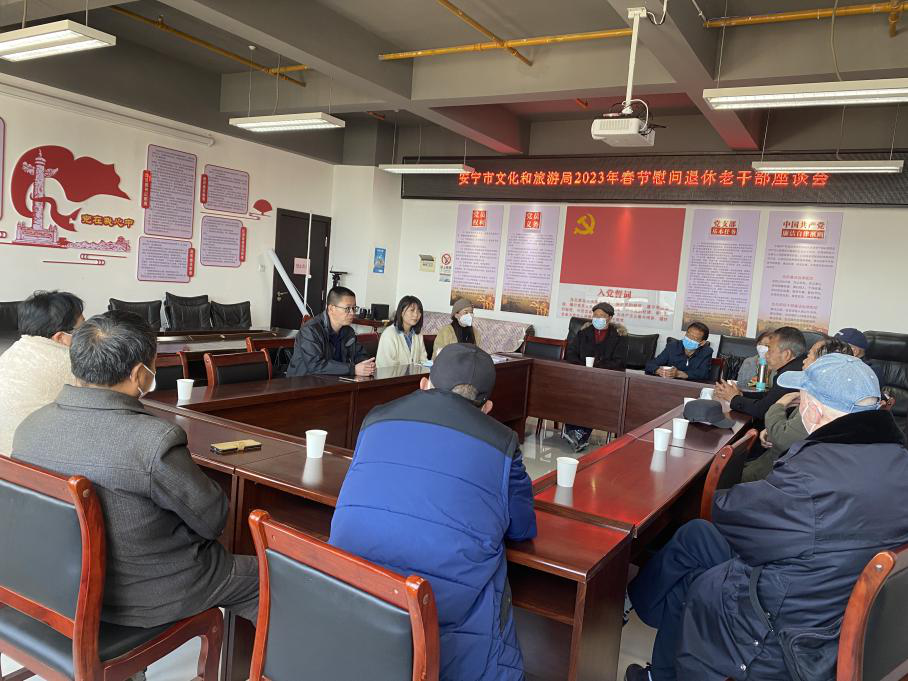 1月17日,市文化和旅游局召开2023年退休干部新春座谈会,12位退休同志参加。市文化和旅游局党组书记、局长唐科,党组成员、副局长刘鑫,党组成员、办公室主任李庆玲参加活动。