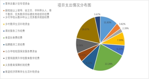 1.营养改善计划专项资金840,260.24元,主要用于对学生营养餐的支出;