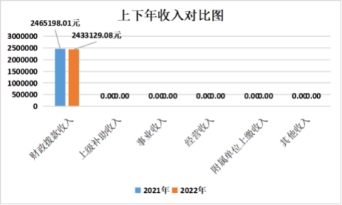 安宁市红十字会2022年度收入合计2,433,129.08元。其中:财政拨款收入2,433,129.08元,占总收入的100.00%;上级补助收入0.00元,占总收入的0.00%;事业收入0.00元(含教育收费0.00元),占总收入的0.00%;经营收入0.00元,占总收入的0.00%;附属单位缴款收入0.00元,占总收入的0.00%;其他收入0.00元,占总收入的0.00%。与上年相比,收入合计减少32,068.93元,下降1.30%;主要原因是一般公共预算财政拨款减少32,068.93元。其中:财政拨款收入减少32,068.93元,下降1.30%;主要原因是救援队建设项目经费减少107,100.00元,公益性救护培训项目经费减少100,000.00元,基本工资与上年相比增加28,200.00元,绩效工资与上年相比增加161,900.00元。上级补助收入减少0.00元,下降0.00%;事业收入减少0.00元,下降0.00%;经营收入减少0.00元,下降0.00%;附属单位上缴收入减少0.00元,下降0.00%;其他收入减少0.00元,下降0.00%。