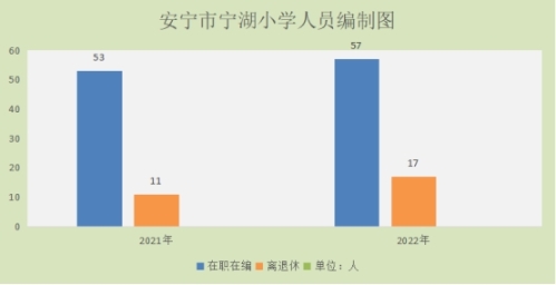 安宁市宁湖小学2022年末实有人员编制57人。其中:行政编制0人(含行政工勤编制0人),事业编制57人(含参公管理事业编制0人);在职在编实有行政人员0人(含行政工勤人员0人),事业人员57人(含参公管理事业人员0人)。