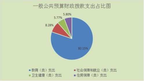 5.教育(类)支出26,259,926.85元,占一般公共预算财政拨款总支出的80.15%。主要用于单位人员经费支出、公用经费支出;