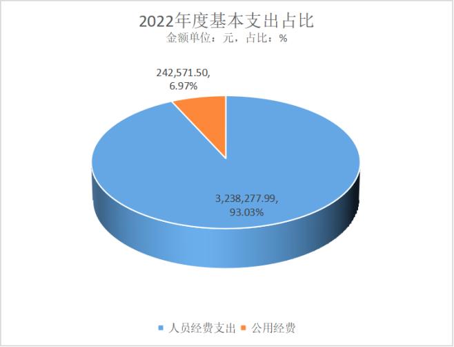 2022年度用于保障中国共产党安宁市委员会统一战线工作部机关正常运转的日常支出3,480,849.49元。其中:基本工资、津贴补贴等人员经费支出3,238,277.99元,占基本支出的93.03%;办公费、印刷费、水电费、办公设备购置等公用经费242,571.50元,占基本支出的6.97%。人均情况:人员经费人均215,885.20元/年,公用经费人均16,171.43元/年。
