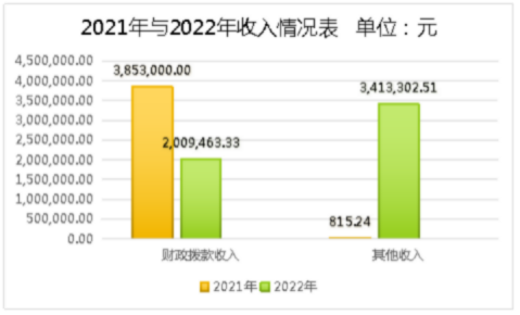 安宁市市容环境卫生管理站2022年度收入合计5,422,765.84元。其中:财政拨款收入2,009,463.33元,占总收入的37.06%;上级补助收入0.00元,占总收入的0.00%;事业收入0.00元(含教育收费0.00元),占总收入的0.00%;经营收入0.00元,占总收入的0.00%;附属单位缴款收入0.00元,占总收入的0.00%;其他收入3,413,302.51元,占总收入的62.94%。与上年相比,收入合计增加1,568,950.60元,增长40.71%。其中:财政拨款收入减少1,843,536.67元,下降47.85%;主要原因是:2022年退休1人,相应的工资、奖金、保险及工作经费减少,2022年与2021年相比奖金减少294,800.00元,城市维护建设费减少621,100.00元,移动厕所的租赁费减少38,000.00元,委托业务费减少42,900.00元,城管驿站的建设经费减少200,000.00元;上级补助收入增加0.00元,增长0.00%;事业收入增加0.00元,增长0.00%;经营收入增加0.00元,增长0.00%;附属单位上缴收入增加0.00元,增长0.00%;其他收入增加3,412,487.27元,增长418,586.83%,主要原因是:我单位属于财政差额拨款单位,2022年将收回的生活垃圾处理费3,413,302.51元作为其他收入交单位自有资金账户中。