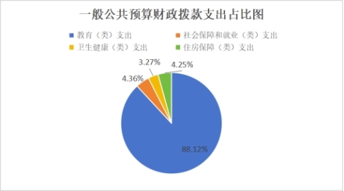 5.教育(类)支出3,107.51万元,占一般公共预算财政拨款总支出的88.13%。主要用于工资福利支出、日常办公、维修维护、专用和办公用设施设备及能源等费用支出;