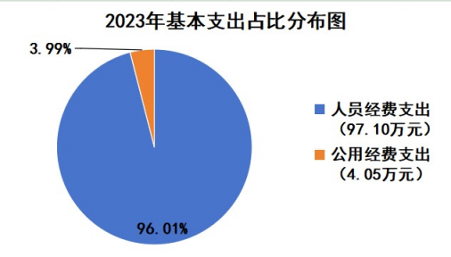 2023年度用于保障安宁市温泉历史文化保护和开发利用中心机构正常运转的日常支出101.15万元。其中:基本工资、津贴补贴等人员经费支出97.10万元,占基本支出的96.01%;办公费、印刷费、水电费、办公设备购置等公用经费4.05万元,占基本支出的3.99%。人员经费支出人均为19.42万元/年,公用经费支出人均为0.81万元/年。