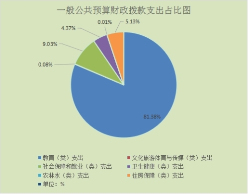 5.教育(类)支出91,692.40万元,占一般公共预算财政拨款总支出的81.38%。主要用于教育管理实务、学前教育、小学教育、初中教育、高中教育、中等职业教育、城市中小学校舍建设、其他教育支出、人员运维资金和工作经费等;