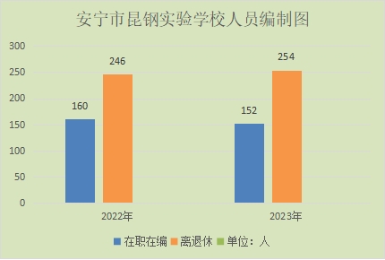 安宁市昆钢实验学校2023年末实有人员编制152人。其中:行政编制0人(含行政工勤编制0人),事业编制152人(含参公管理事业编制0人);在职在编实有行政人员0人(含行政工勤人员0人),参照公务员法管理事业人员0人,非参公管理事业人员152人。