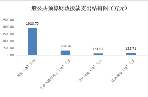 5.教育(类)支出1,923.70万元,占一般公共预算财政拨款总支出的75.77%。主要用于教育管理事务方面,工资福利支出、商品和服务支出、对个人和家庭补助支出等;