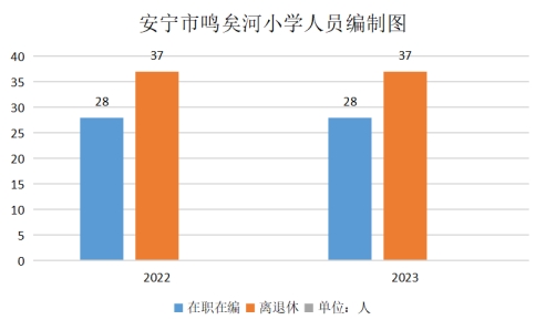 安宁市鸣矣河小学2023年末实有人员编制28人。其中:行政编制0人(含行政工勤编制0人),事业编制28人(含参公管理事业编制0人);在职在编实有行政人员0人(含行政工勤人员0人),参照公务员法管理事业人员0人,非参公管理事业人员28人。