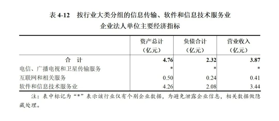 2023年末,信息传输、软件和信息技术服务业企业法人单位资产总计4.76亿元,比2018年末增长55.1%;负债合计2.32亿元,比2018年末增长215.2%。