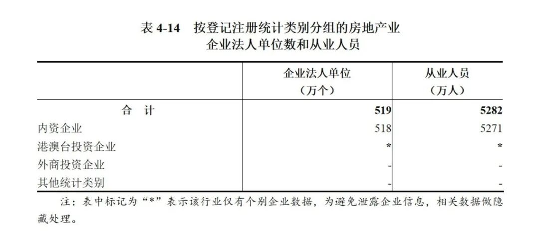 在房地产业企业法人单位从业人员中,内资企业占99.8%,港澳台投资企业占0.2%(详见表4-14)。