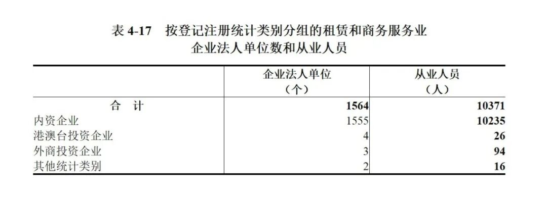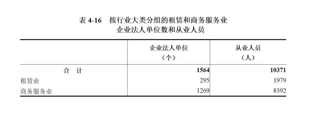 2023年末,全市共有租赁和商务服务业企业法人单位1564个,从业人员10371人,分别比2018年末增长154.3%和18.8%。