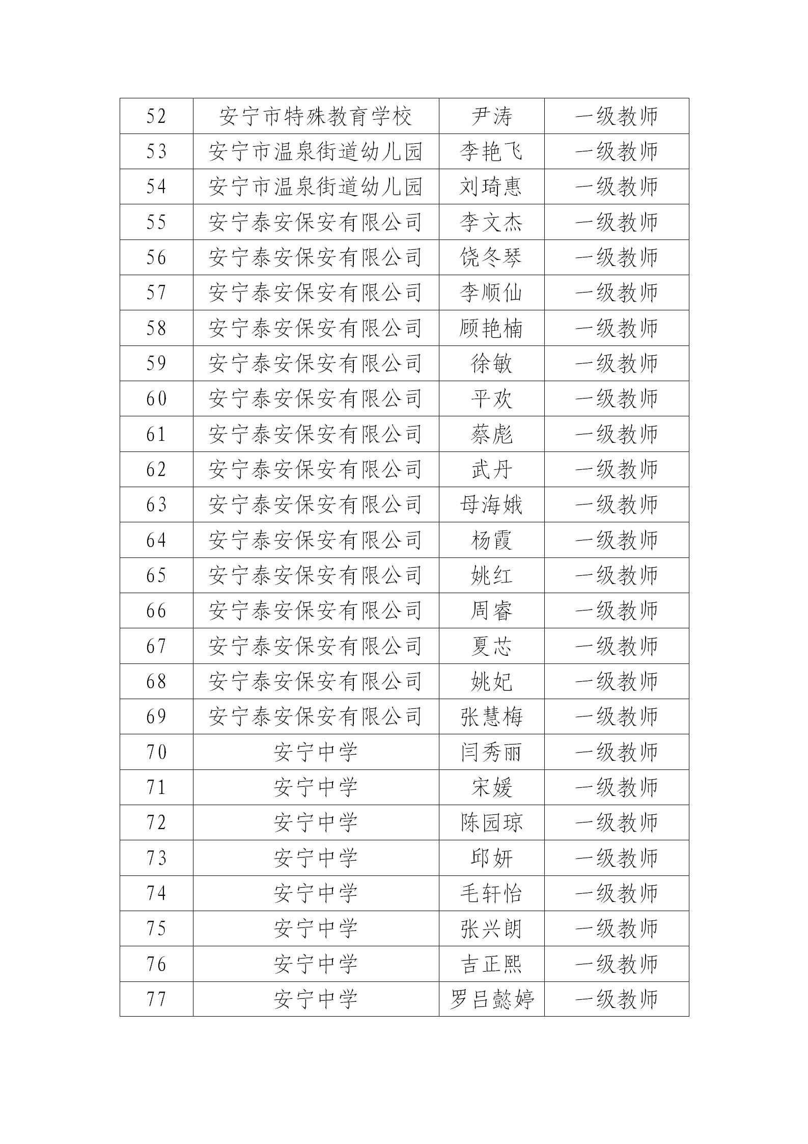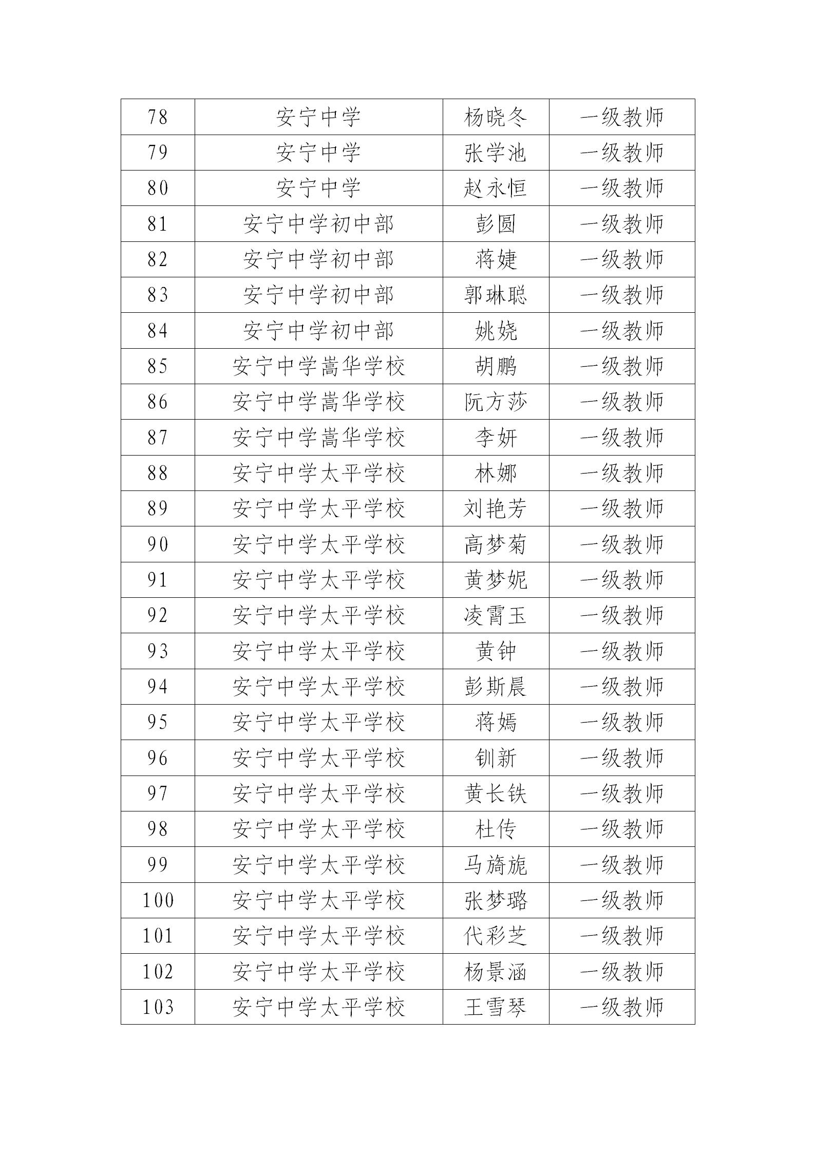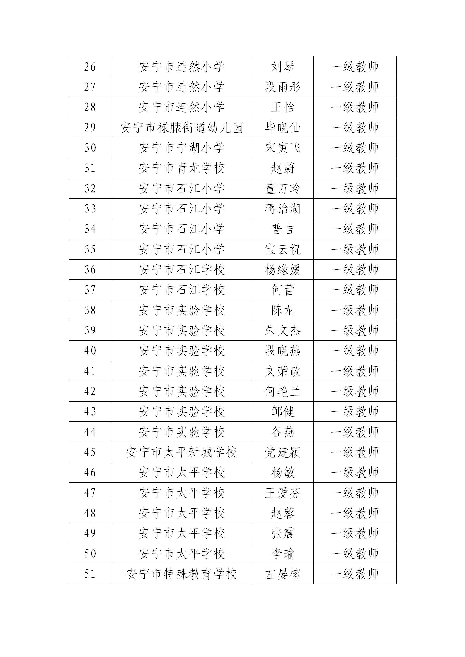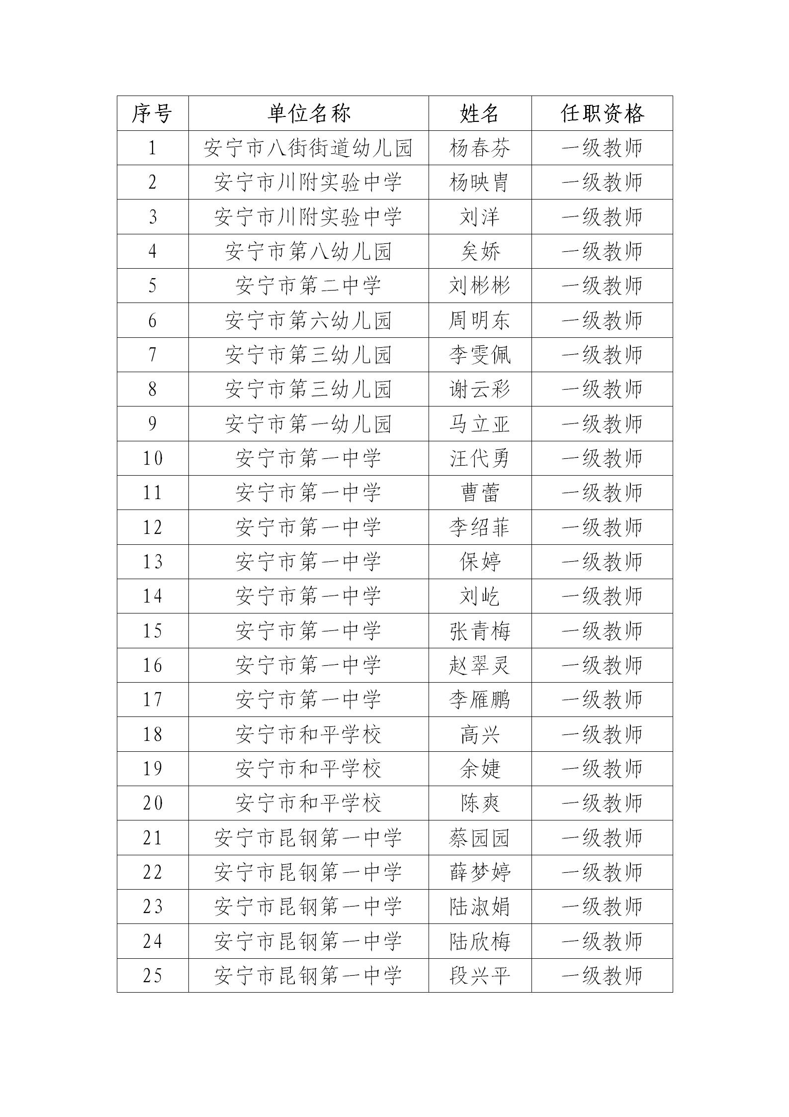 2025年安宁市中小学教师中级职称评审委员会评审通过人员公示
