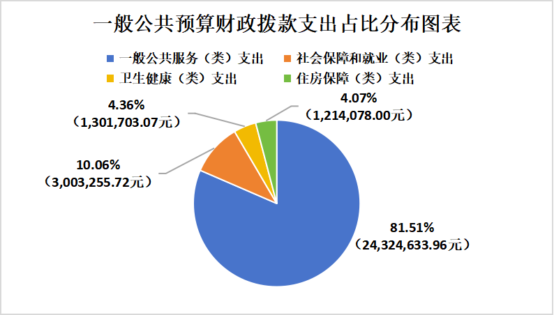 1.一般公共服务(类)支出24,324,633.96元,占一般公共预算财政拨款总支出的81.51%,完成年初预算的103.35%。主要用于安宁市财政局机构运转的人员经费、公用经费支出和为完成特定行政工作任务或事业发展目标的专项业务工作经费支出;造成预决算差异的主要原因是人员增减变动和严控不必要的公用经费支出导致基本支出减少535,602.64元,由于本年财政工作的安排需要项目支出增加1,323,849.52元(主要涉及新捷森公司利息经费增加3,980,000.00元、财政委托业务经费减少1,663,900.00元、财政业务经费减少632,871.43元、财政信息系统运行维护经费减少193,147.50元、预算绩效管理专项经费减少154,800.00元和其他项目减少11431.55元)。