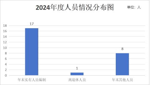 我单位2024年末编制内实有人员17人。包括财政拨款开支经费的:公务员0人,参照公务员法管理人员0人,事业管理人员和专业技术人员17人,机关和事业工人0人;经费自理人员0人。
