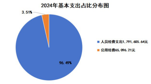 2024年度用于保障安宁市公共资源交易中心机构正常运转的日常支出1,856,701.85元。其中:基本工资、津贴补贴等人员经费支出1,791,605.64元,占基本支出的96.49%;办公费、印刷费、水电费、办公设备购置等公用经费65,096.21元,占基本支出的3.51%。人员经费支出人均179,160.55元/年,公用经费人均6,509.62元/年。
