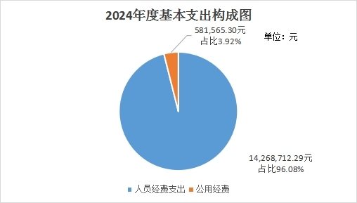 2024年度用于保障安宁市文化和旅游局(汇总)机关、下属事业单位等机构正常运转的日常支出14,850,277.59元。其中:基本工资、津贴补贴等人员经费支出14,268,712.29元,占基本支出的96.08%;办公费、印刷费、水电费、办公设备购置等公用经费581,565.30元,占基本支出的3.92%。人员经费支出人均129,181.47元/年,公用经费人均4,408.67元/年。
