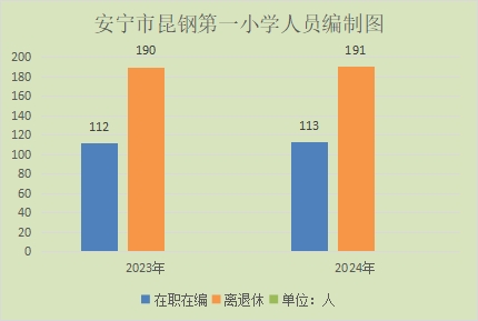 (一)安宁市昆钢第一小学2024年度一般公共预算财政拨款支出41,500,053.63元,占本年支出合计的100.00%。与上年相比减少803,390.05元,下降1.90%,完成年初预算的135.05%。完成年初预算占比大于100.00%的主要原因是:1.2024年预算的教师人数为115人,2024年末教师人数为112人,中途退休3人,教师工资社保开支减少,人员经费支出减少;2.2024年学校义务教育保障机制经费、学生资助经费、课后服务经费为年中增加项目,项目支出增加。