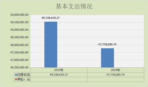 2024年度用于保障安宁市昆钢第一中学机构正常运转的日常支出47,778,009.74元。其中:基本工资、津贴补贴等人员经费支出43,710,683.24元,占基本支出的91.49%;办公费、印刷费、水电费、办公设备购置等公用经费4,067,326.50元,占基本支出的8.51%。人员经费支出人均231,273.46元/年,公用经费人均21,520.25元/年。