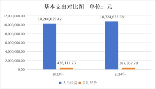 与上年相比,支出合计增加446,827.36元,增长3.57%。其中:基本支出增加420,354.63元,增长3.93%;项目支出增加26,472.73元,增长1.46%;主要原因是2024年社保基数调整,工资调整,基本支出增加;增加红十字会拨项目经费故项目支出增加。