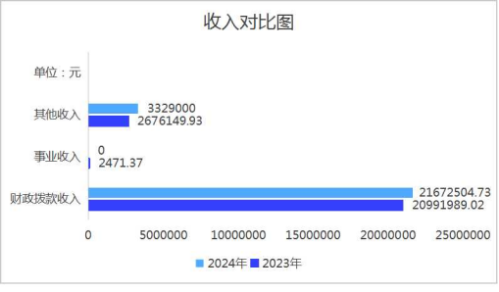 与上年相比,收入合计增加1,330,894.41元,增长5.62%。其中:财政拨款收入增加680,515.71元,增长3.24%;上级补助收入增加0.00元;事业收入减少2,471.37元,下降100.00%;经营收入增加0.00元;附属单位上缴收入增加0.00元;其他收入增加652,850.07元,增长24.40%。主要原因是:2024年幼儿园编外教师及幼儿人数增加,故编外教师工资和公用经费增加,在编教师全员调整薪级工资、部分岗位工资增加,社保、公积金调整新基数,故财政拨款收入较上年增加680,515.71元;2024年幼儿及教师就餐人数增加,幼儿伙食费和教师伙食费收入较上年增加652,850.07元。