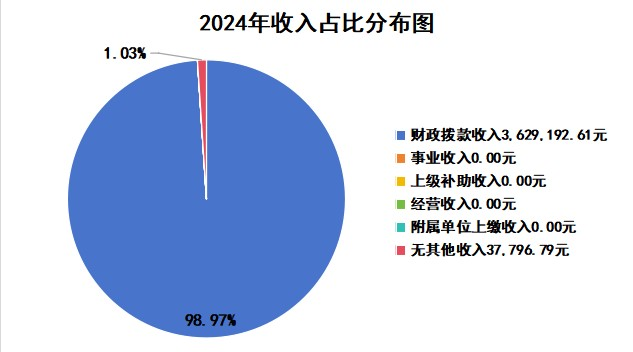 中国共产党安宁市委员会老干部局2024年度收入合计3,666,989.40元。其中:财政拨款收入3,629,192.61元,占总收入的98.97%;无上级补助收入;无事业收入;无经营收入;无附属单位上缴收入;其他收入37,796.79元,占总收入的1.03%。