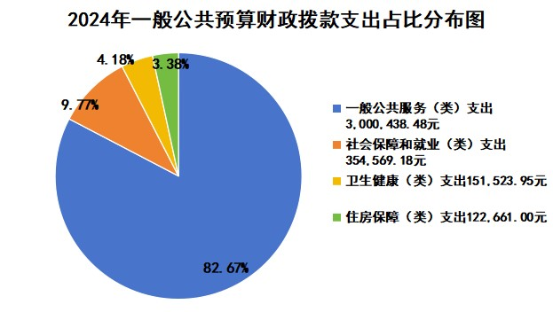 1.一般公共服务(类)支出3,000,438.48元,占一般公共预算财政拨款总支出的82.67%,完成年初预算的98.43%。主要用于人员经费、公用经费,构正常运转的日常支出;造成预决算差异的主要原因是年度中人员变动。