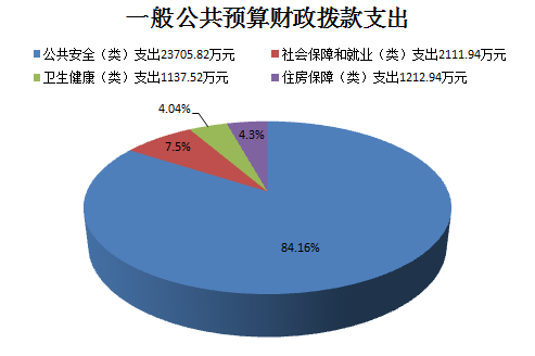4.公共安全(类)支出237,058,247.61元,占一般公共预算财政拨款总支出的84.16%,完成年初预算的94.33%。主要用于工资福利支出、基本工资、津贴补贴、奖金、绩效工资、社保缴费等人员经费以及全市公安机关依法履职,开展维稳、严厉打击各类刑事犯罪、装备及信息化建设等专项业务工作方面的开支;造成预决算差异的主要原因是年度执行过程中人员变动以及因执法工作的突发性、特殊性导致与年初预算存在差异。