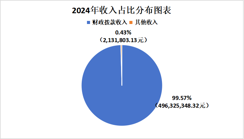 安宁市水务局2024年度收入合计498,457,151.45元。其中:财政拨款收入496,325,348.32元,占总收入的99.57%;无上级补助收入;无事业收入;无经营收入;无附属单位上缴收入;其他收入2,131,803.13元,占总收入的0.43%。