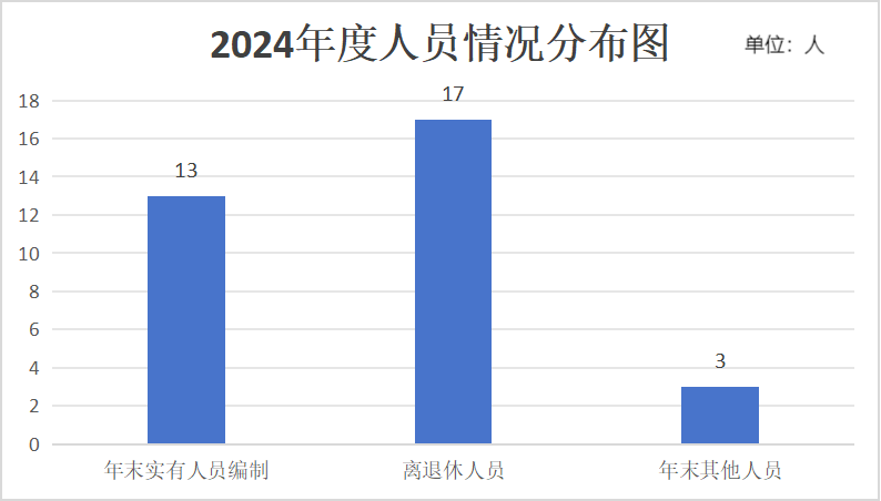 我单位2024年末编制内实有人员13人。包括财政拨款开支经费的:公务员0人,参照公务员法管理人员3人,事业管理人员和专业技术人员9人,机关和事业工人1人;经费自理人员0人。