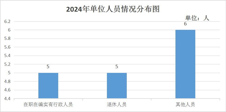 我单位2024年末编制内实有人员5人。包括财政拨款开支经费的:公务员3人,参照公务员法管理人员0人,事业管理人员和专业技术人员0人,机关和事业工人2人;经费自理人员0人。
