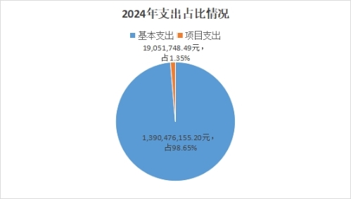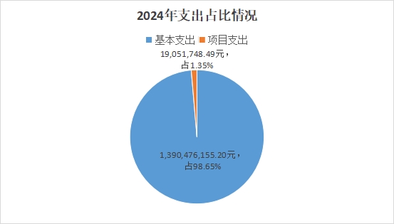 安宁市第一人民医院2024年度支出合计1,409,527,903.69元。其中:基本支出1,390,476,155.20元,占总支出的98.65%;项目支出19,051,748.49元,占总支出的1.35%;无上缴上级支出;无经营支出;无对附属单位补助支出。