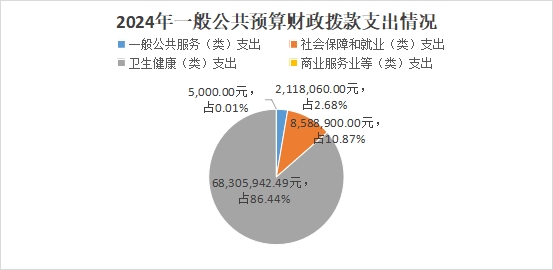 9.卫生健康(类)支出68,305,942.49元,占一般公共预算财政拨款总支出的86.44%,完成年初预算的127.97%。主要用于编内在职人员工资支出51,377,254.00元、身边好人补助2,000.00元、药品零差率销售补助1,500,000.00元、昆明理工大学合作经费1,000,000.00元、三年高质量行动补助2,491,390.78元、公立医院综合改革补助950,000.00元、助理全科医生基地补助756,000.00元、十百千工程和内设研究机构技术中心经费300.00元、基层医疗卫生人员技能培训项目资金529,883.50元、新生儿疾病筛查527,620.00元、基本公共卫生服务项目补助620,000.00元、重大传染病防控补助463,502.31元、新冠病毒感染过渡期医务人员临时性工作补助1,952,854.00元、助理全科医生培训补助2,182,490.34元、药具管理补助1,920.00元、卫生健康人才培养补助1,284.00元、疼痛科国家级重点专科补助3,949,443.56元;造成预决算差异的主要原因是年初预算仅包含离退休人员生活补助、编内在职人员补助和药品零差率补助;决算数包含年初预算项目和财政实际补助经费。