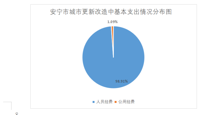 2024年度用于保障安宁市城市更新改造中心机关、下属事业单位等机构正常运转的日常支出936,283.02元。其中:基本工资、津贴补贴等人员经费支出926,083.02元,占基本支出的98.91%;办公费、印刷费、水电费、办公设备购置等公用经费10,200.00元,占基本支出的1.09%。人员经费支出人均185,216.60元/年,公用经费人均2,040.00元/年。