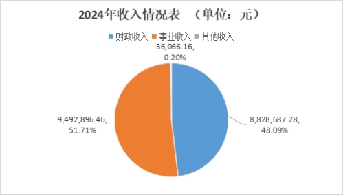 安宁市县街中心卫生院2024年度收入合计18,357,649.90元。其中:财政拨款收入8,828,687.28元,占总收入的48.09%;无上级补助收入;事业收入9,492,896.46元(含教育收费0.00元),占总收入的51.71%;无经营收入;无附属单位上缴收入;其他收入36,066.16元,占总收入的0.20%。