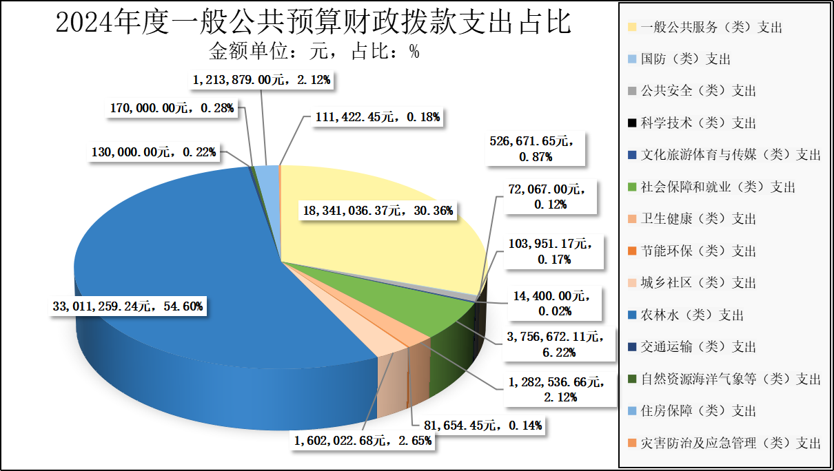 12.农林水(类)支出33,011,259.24元,占一般公共预算财政拨款总支出的54.64%,完成年初预算的273.72%。主要用于农业农村一般行政管理事务20,000,000.00元、农业农村事业运行21.94元、病虫害控制89,223.00元、农业生产发展259,150.00元、农村社会事业112,800.00元、林业草原防灾减灾2,316,021.89元、江河湖库水系综合整治208,695.21元、对村级公益事业建设的补助760,000.00元、对村民委员会和村党支部的补助9,264,743.20元、创业担保贷款贴息及奖补604.00元。造成预决算差异的主要原因是:较年初预算增加草铺街道安置配套补助经费20,000,000.00元、增加草铺街道烤烟生产相关项目补助经费、增加草铺街道烤烟生产相关项目补助经费179,255.09元、增加草铺街道村庄保洁行动补助资金56,560.00元、增加草铺街道学习推广“千万工程”经验本级配套专项资金56,540.00元、增加草铺街道涉林村(社区)森林草原防灭火管护专项经费79,843.00元、增加草铺街道防火公路修缮专项资金190,000.00元、增加草铺街道扑火队高火险期夜间巡查(调剂)补贴经费38,250.00元、增加草铺街道森林防火涉村(社区)防火保证金奖励经费364,400.00元,故农林水(类)支出较年初预算增加。