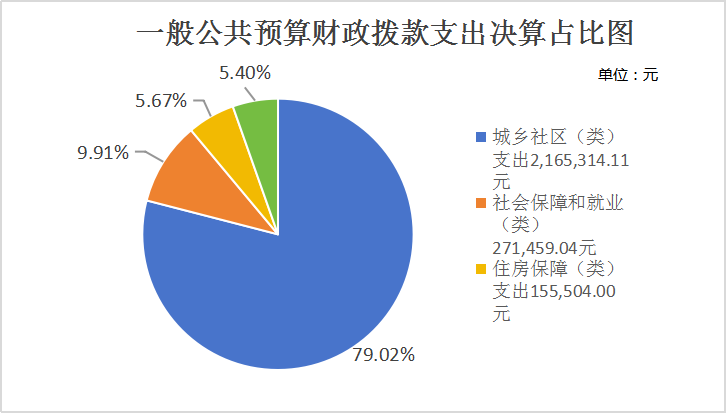11.城乡社区(类)支出2,165,314.11元,占一般公共预算财政拨款总支出的79.02%,完成年初预算的94.48%主要用于事业人员工资福利费和社保费、日常运转公用经费、工会经费2,165,314.11元;造成预决算差异的主要原因是造成预决算差异的主要原因是:事业人员工资福利费和社保费、日常运转公用经费、工会经费年初预算126,593.29元决算未支出。