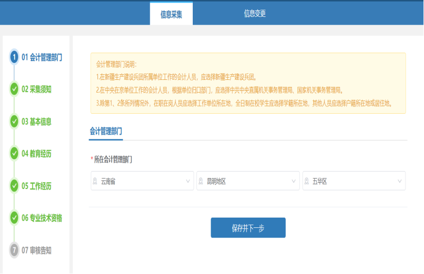 (1)从事会计相关工作的人员,按单位营业执照工商登记所在地选择(如:云南省市场监督管理局颁发的营业执照选择省直属,州、市级和县、市、区级市场监督管理局颁发的营业执照,选择对应所属地)。